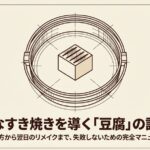 私も、すき焼きの豆腐は何となく選ぶより、理由を知って使い分けたほうが満足度が上がると感じています。すき焼き風の肉豆腐との違い、豆腐に味がしみるコツ、余った豆腐のリメイク、自家製焼き豆腐の作り方まで押さえておくと、鍋の時間がかなり安定します。